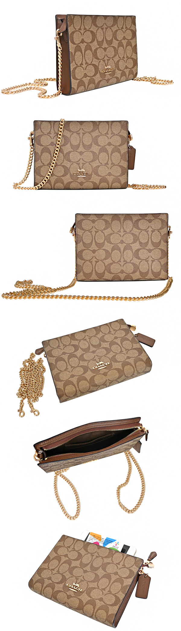 ■材質:C Logo PVC素面真皮飾邊/金屬鍊斜背帶、布面內裡