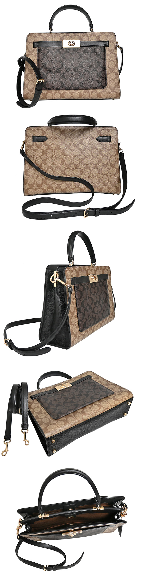 ■皮革釦式半開放開合,內置雙主夾層/一拉鍊袋/單格開口袋、外部正面一旋釦半開放開合暗袋