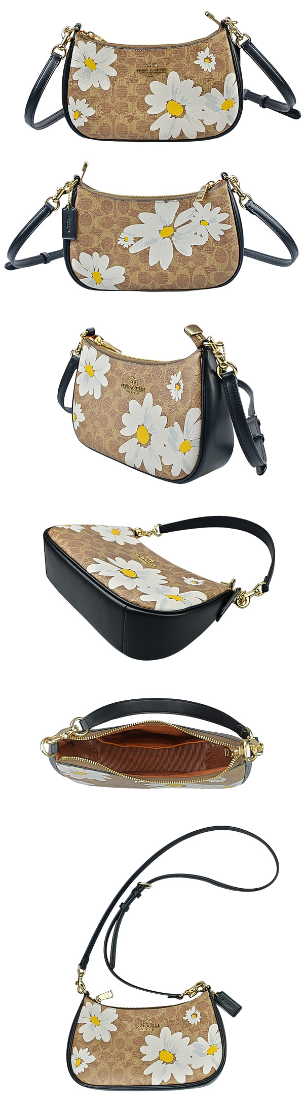 ■材質:C Logo圖印PVC、素面真皮飾邊壓底及背帶、布面內裡